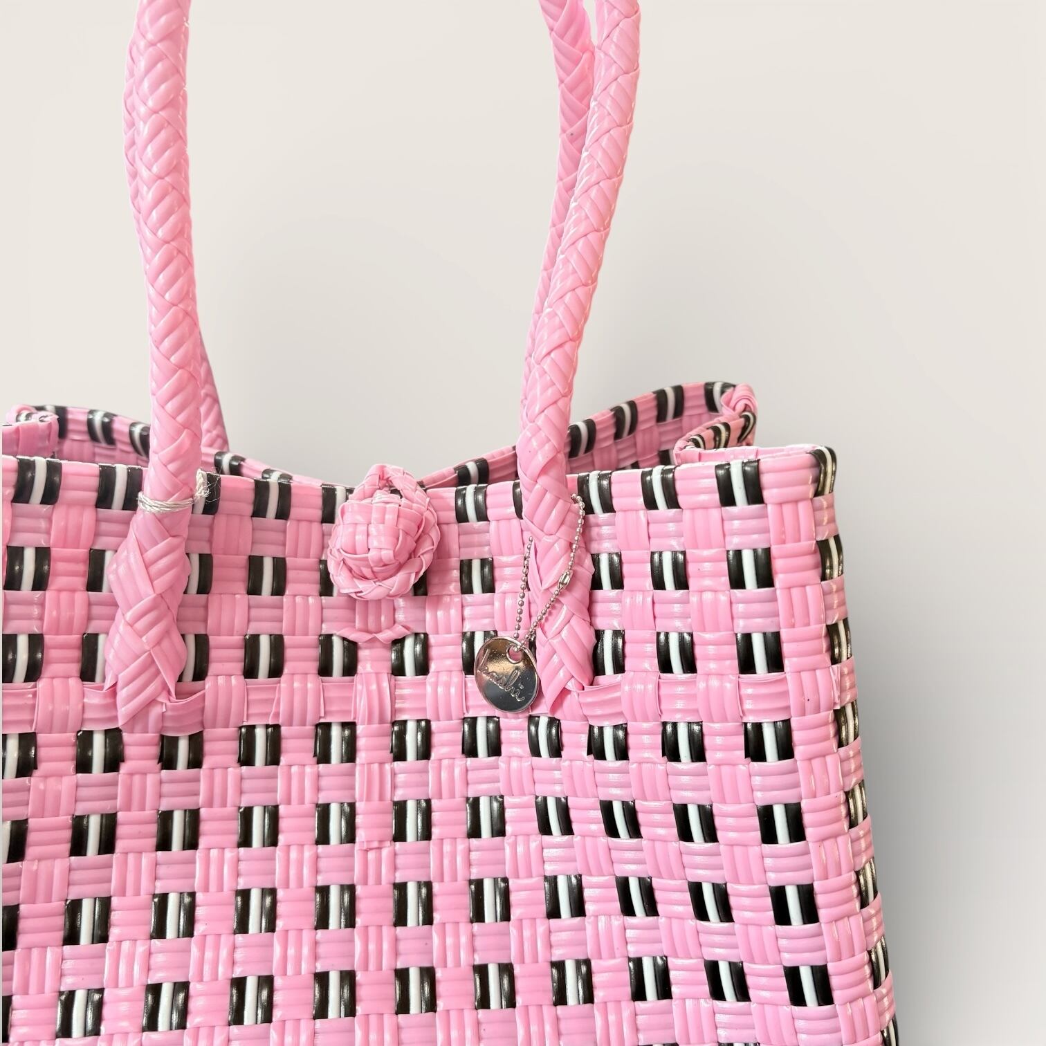 bijou bag横長S ピンク×モノトーン