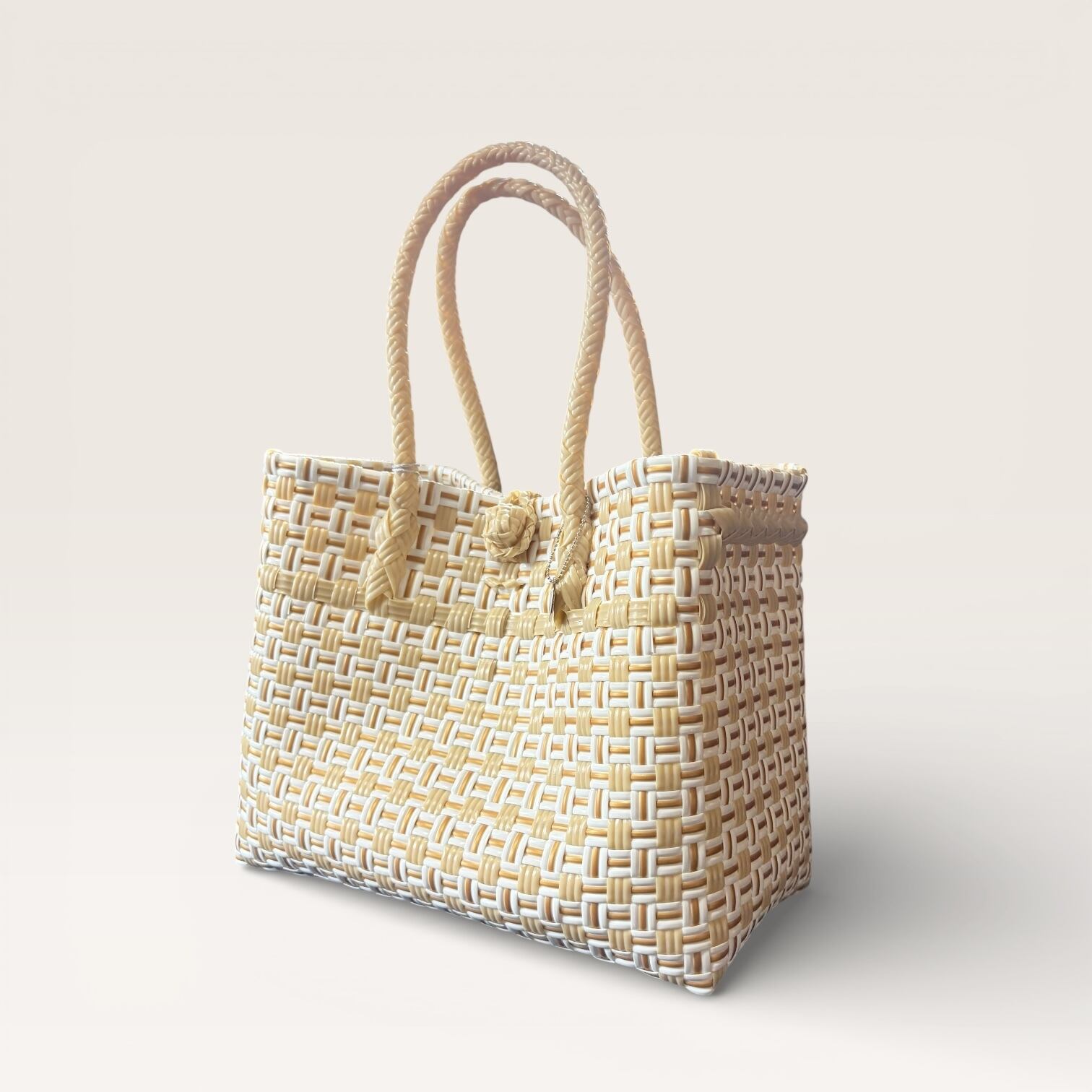 エレガントに持てるカゴバッグです。