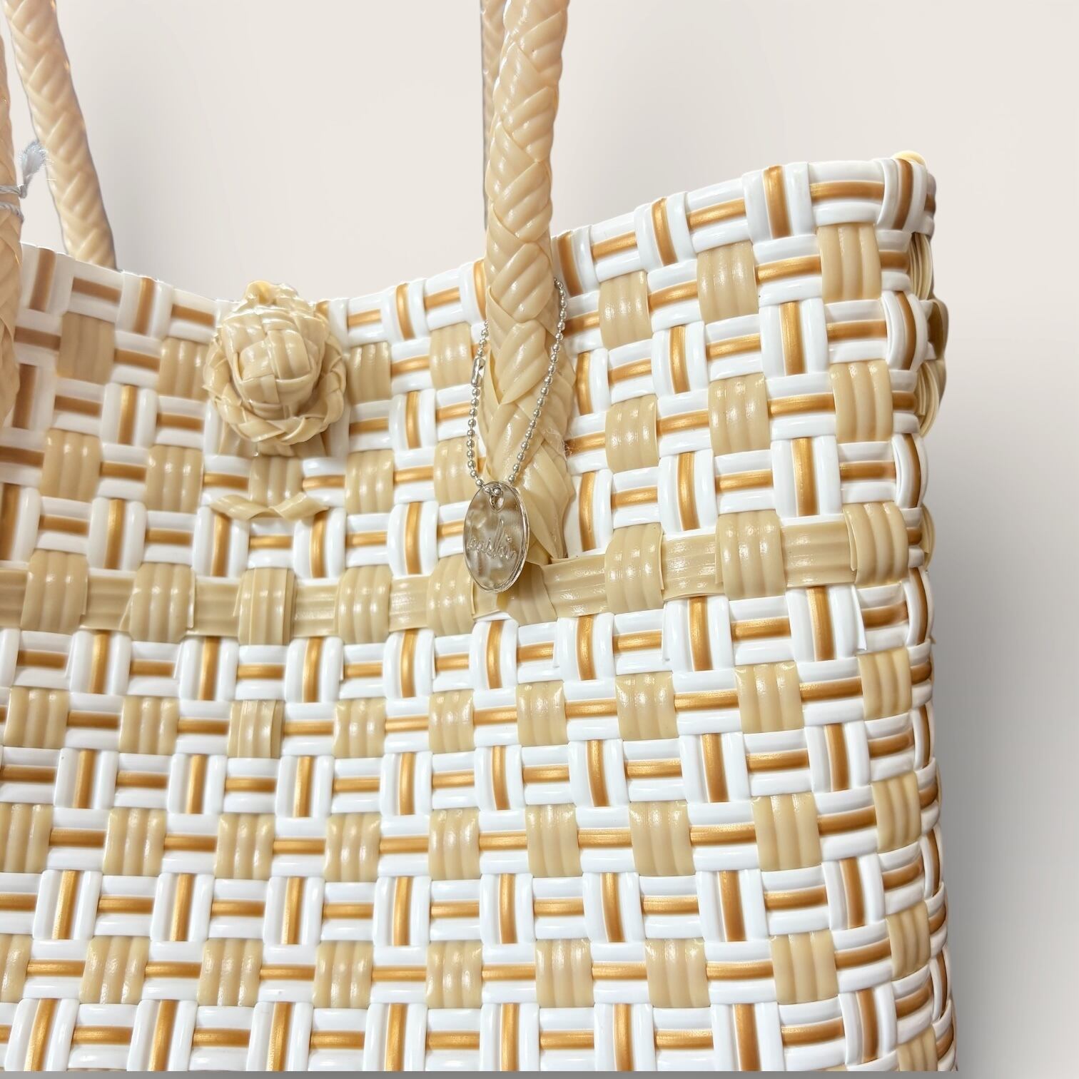 bijou bag横長S ベージュ×ホワイトゴールド