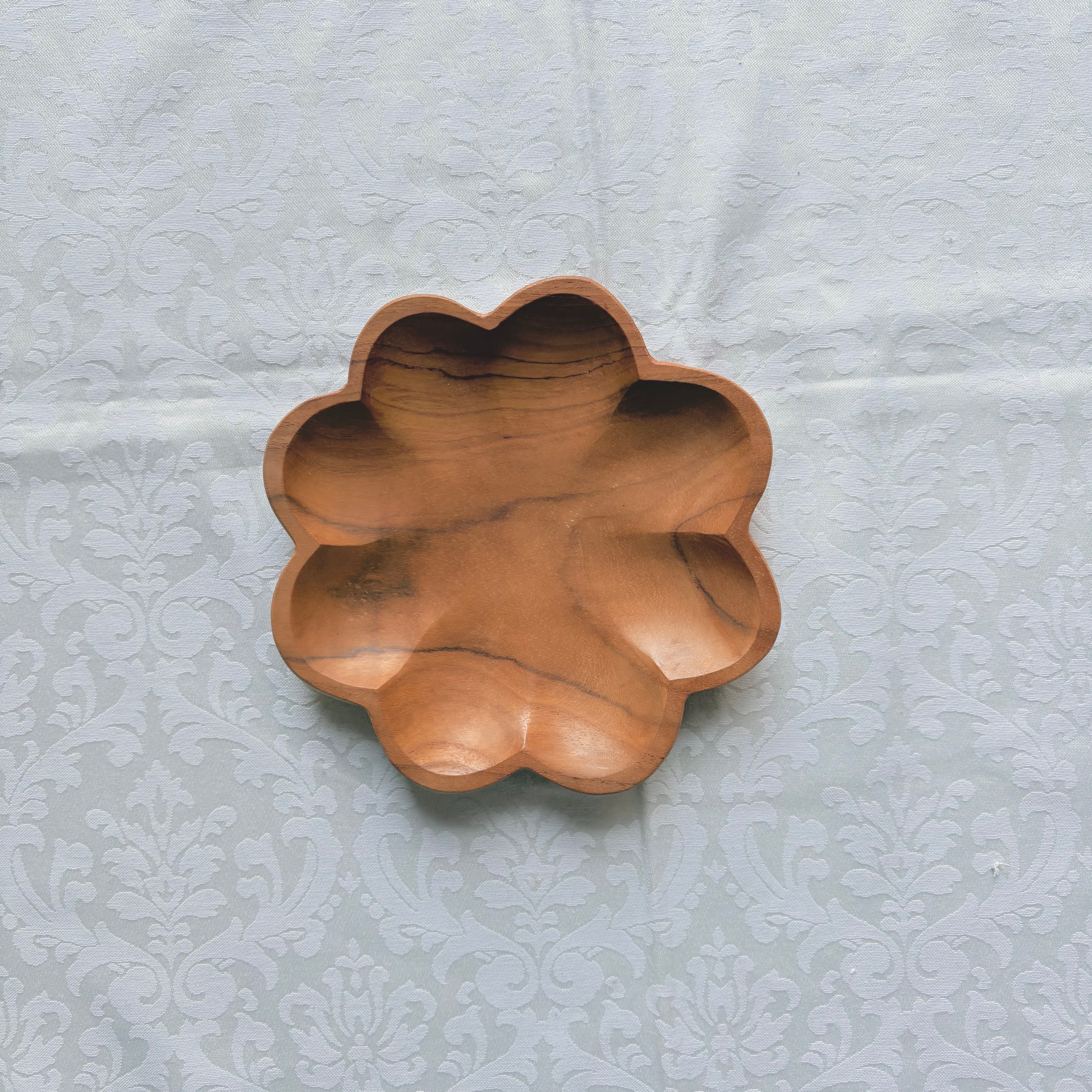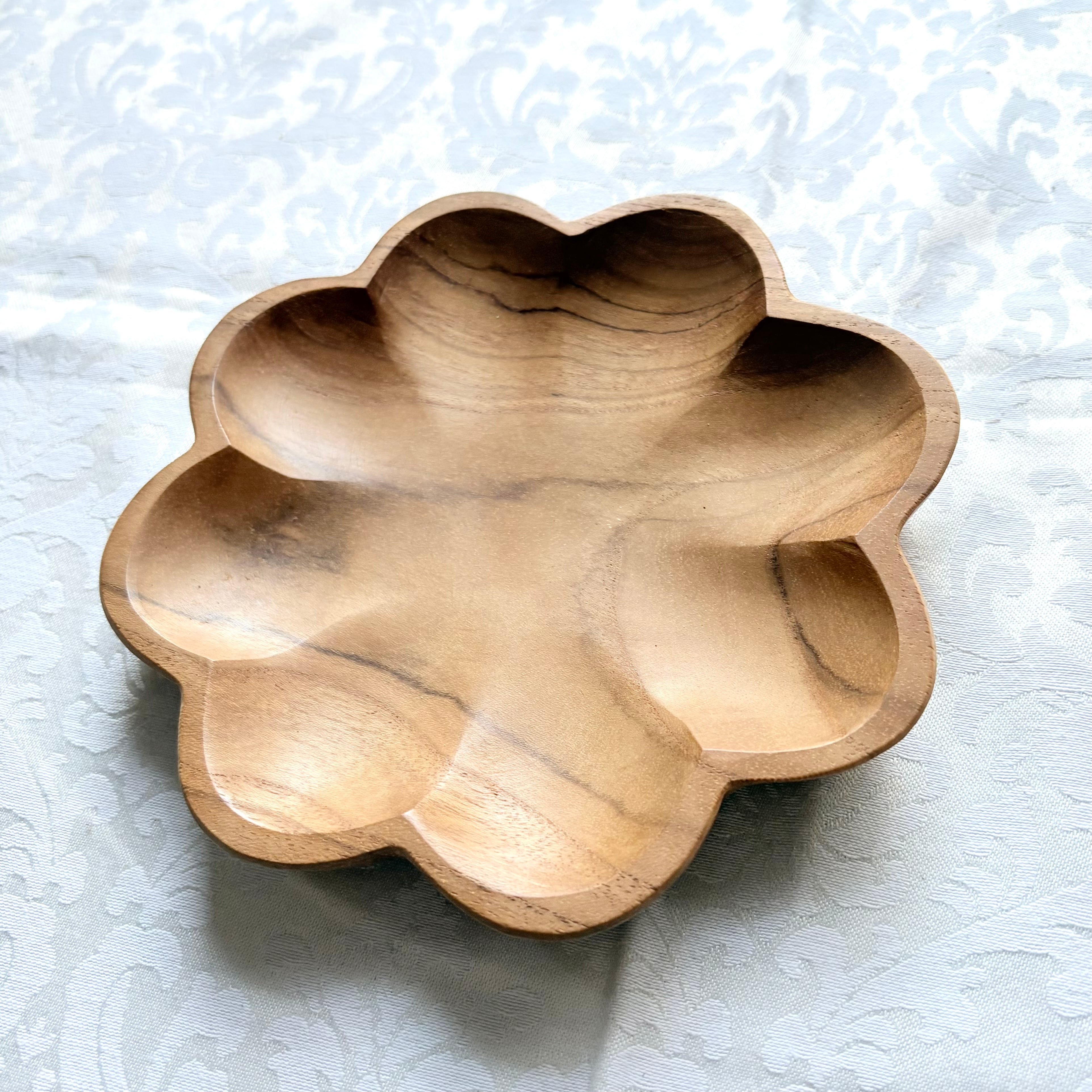 お花の形のチーク材トレイS