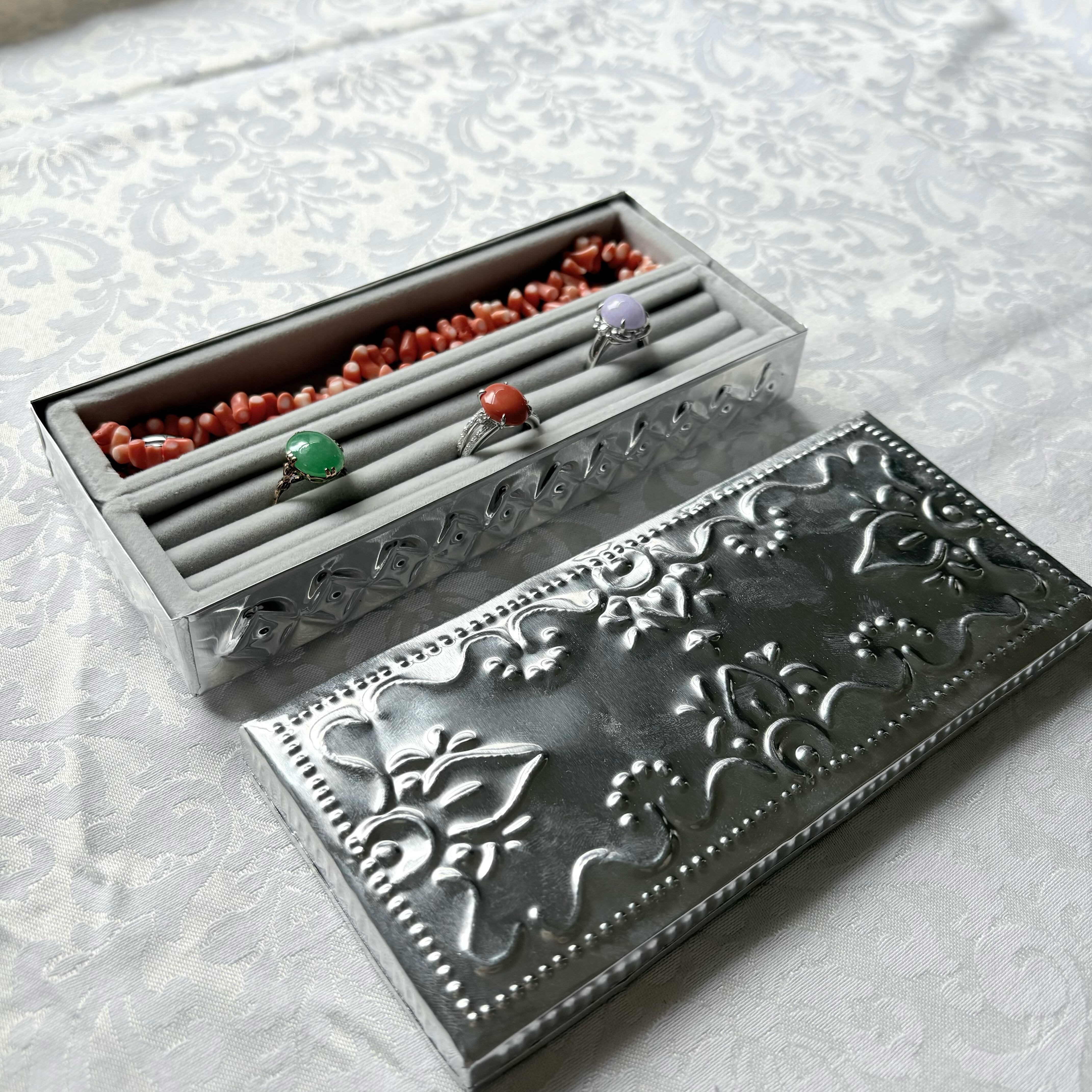 アルミジュエリーBOX長方形S シルバー 【ベロアジュエリーケース付き】