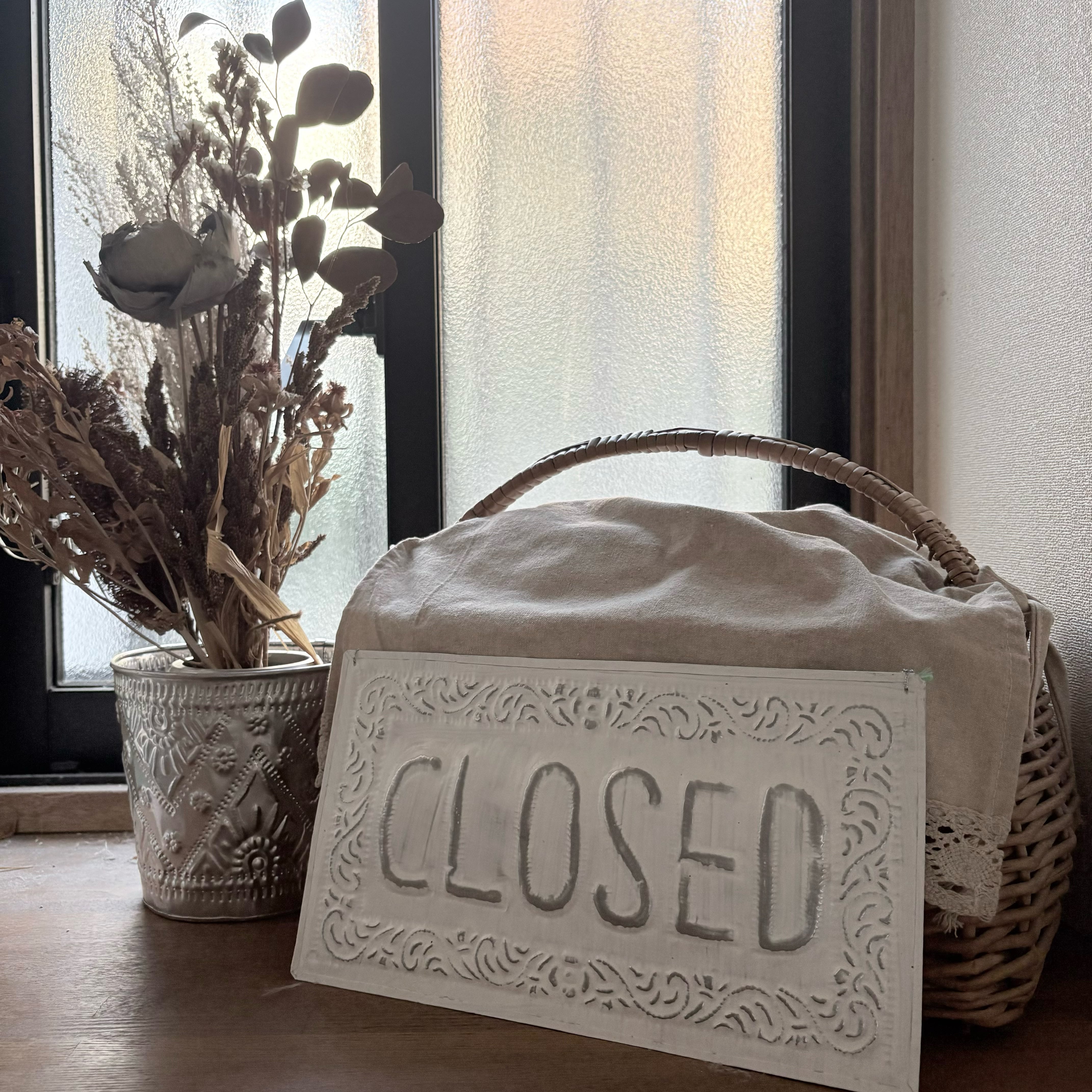 シャビーシック調のの模様は、バリ島の職人さんがアルミの板を金属で叩いて打ち出した物。