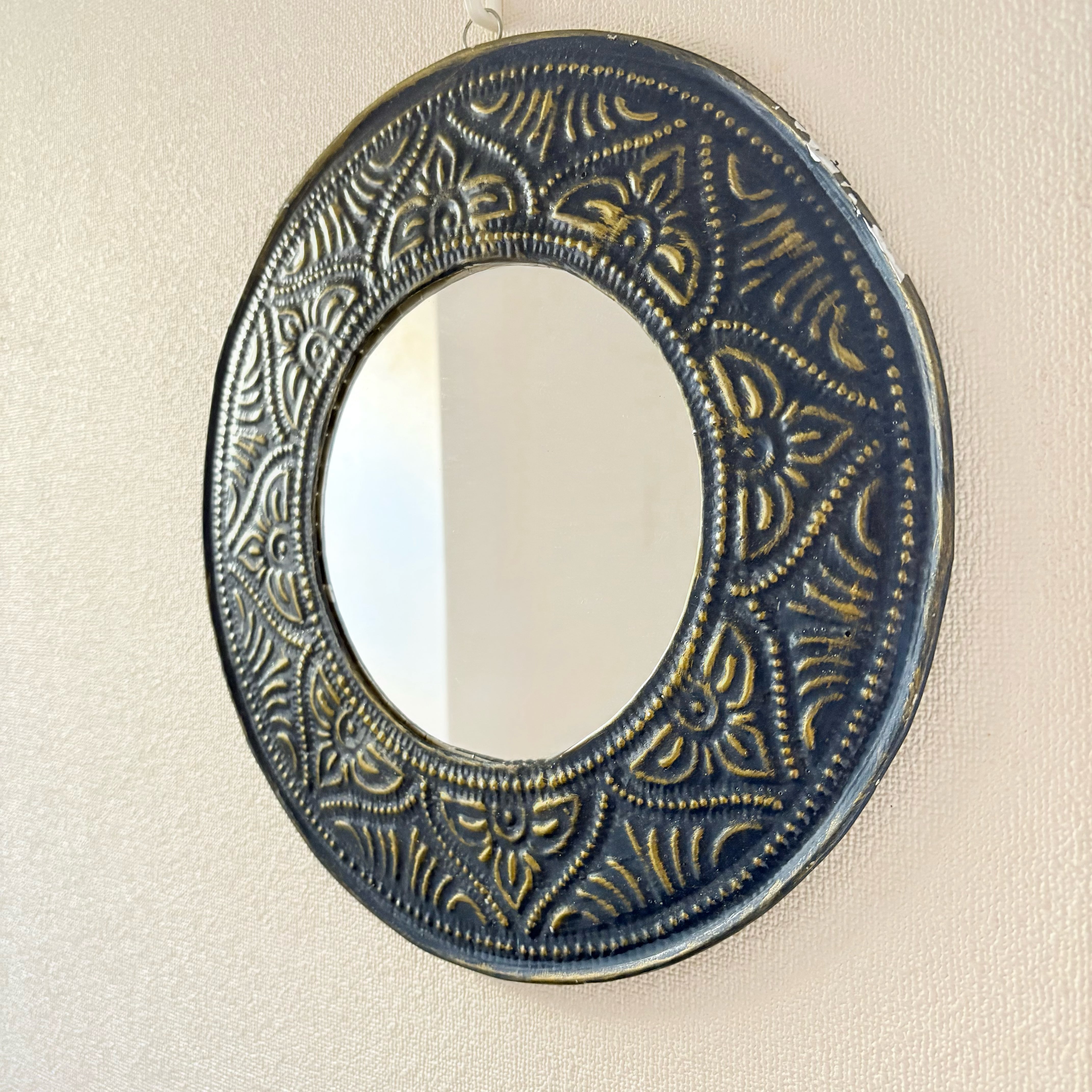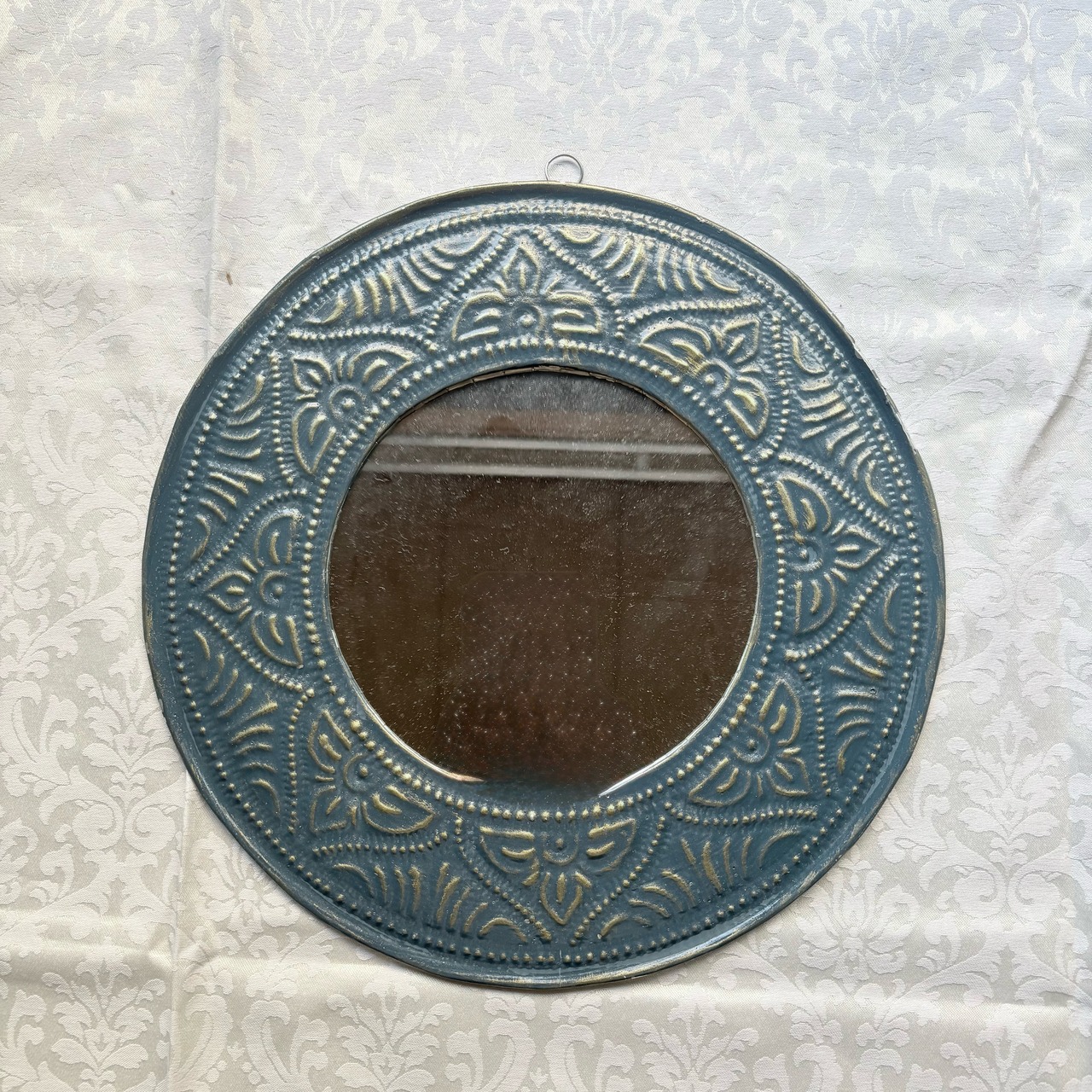 【一点物】アンティーク風アルミフレームミラーラウンド ネイビー