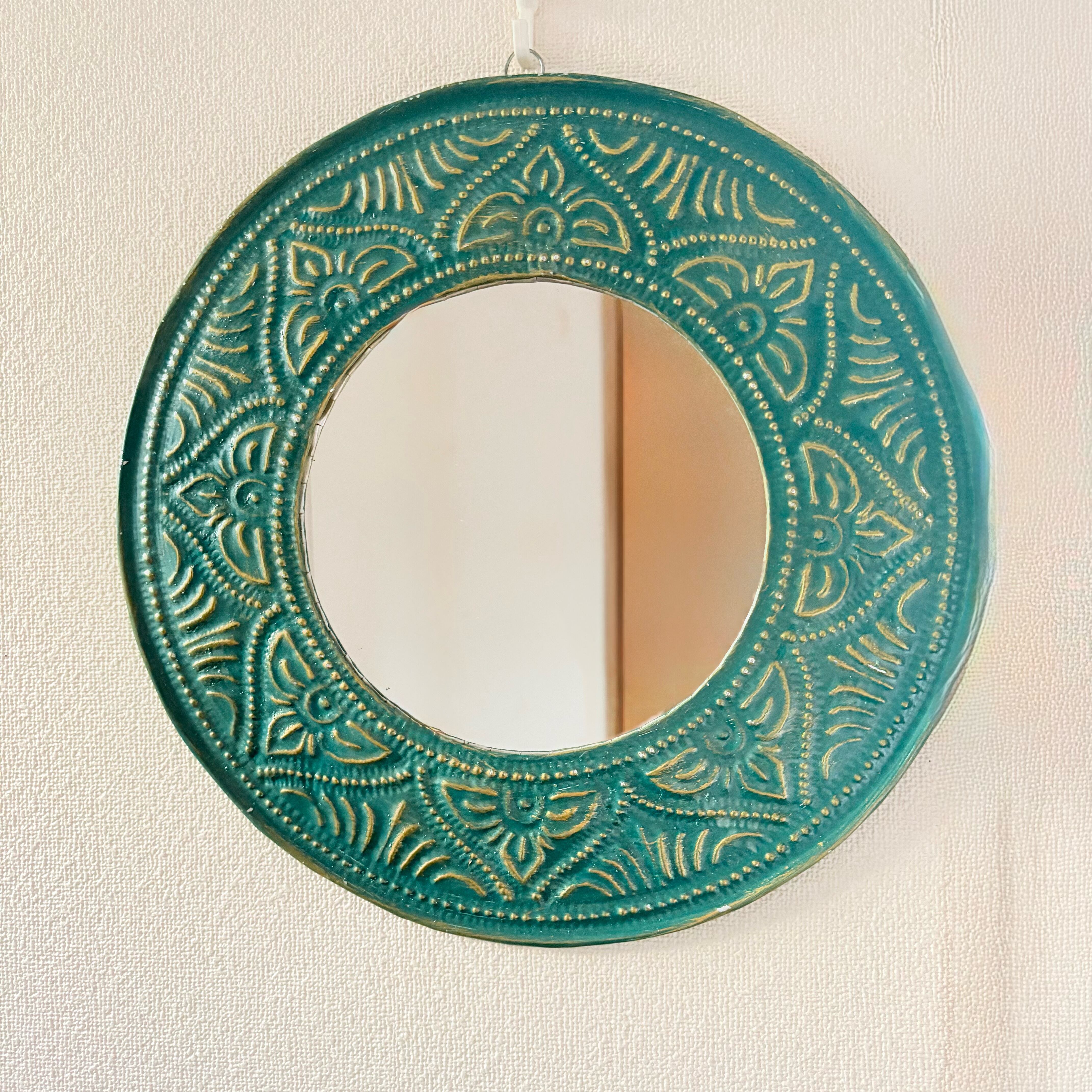 【一点物】アンティーク風アルミフレームミラーラウンド グリーン