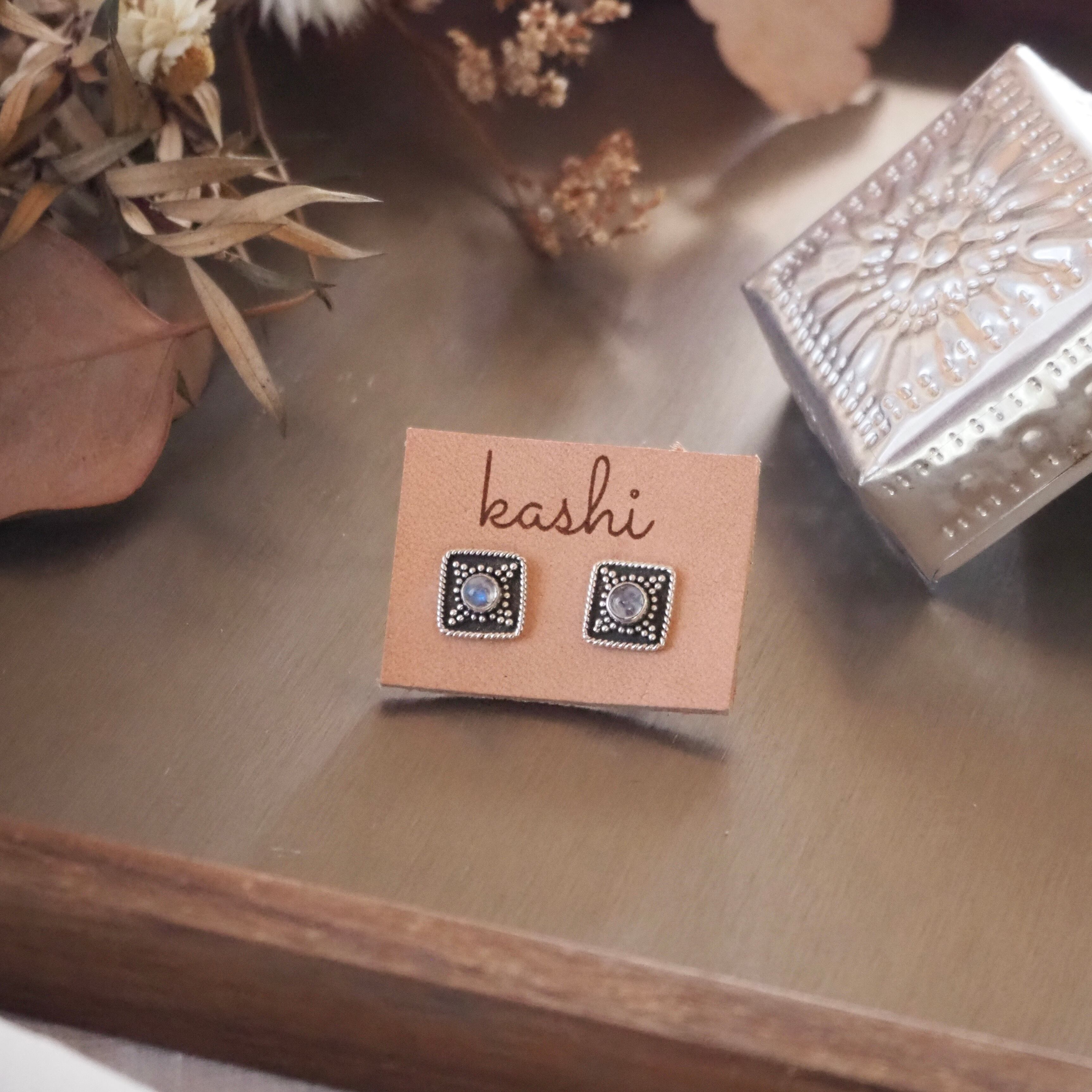 ⌘LuUna silver⌘ square moonstone silver925ピアス
