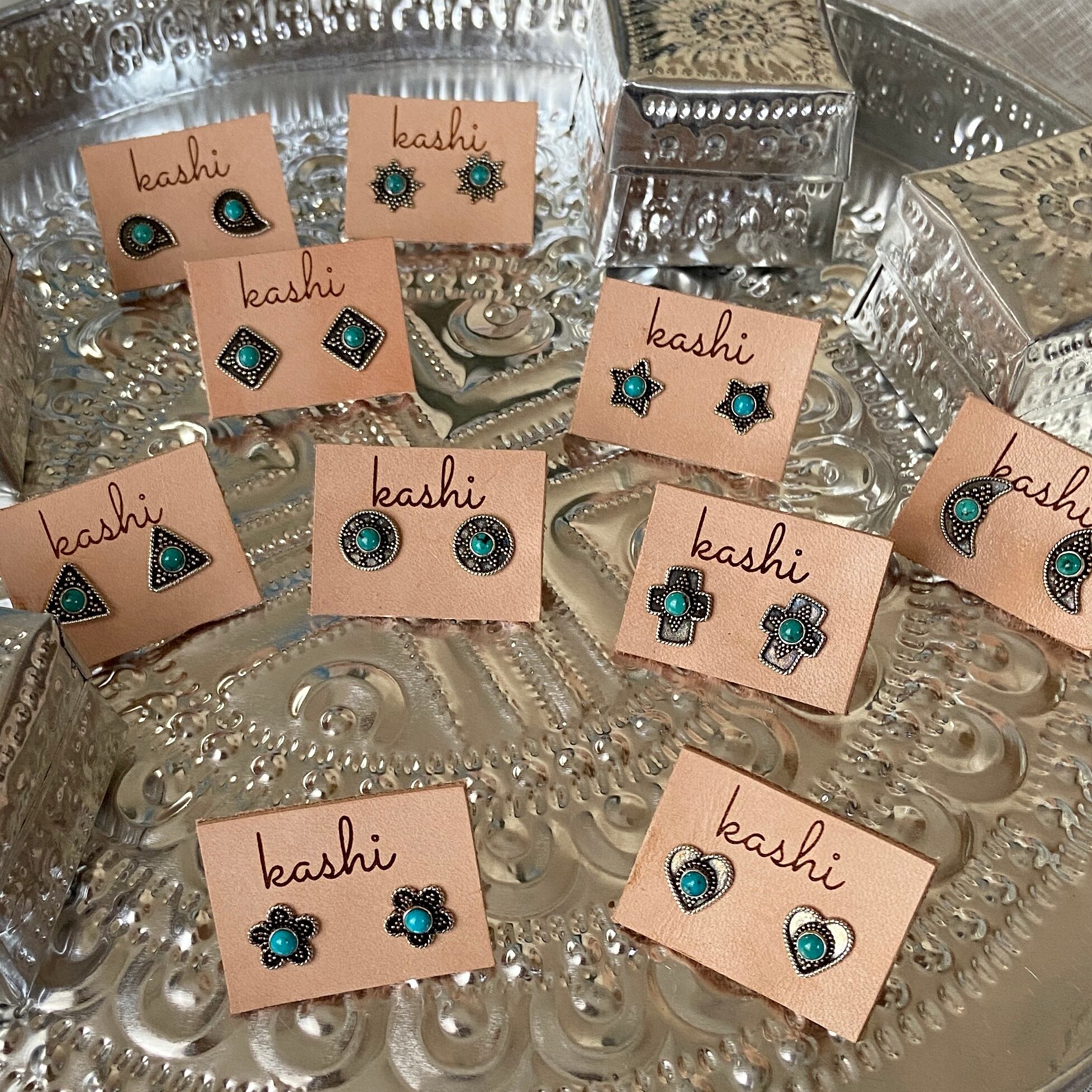 ⌘LuUna silver⌘ square turquoise silver925ピアス