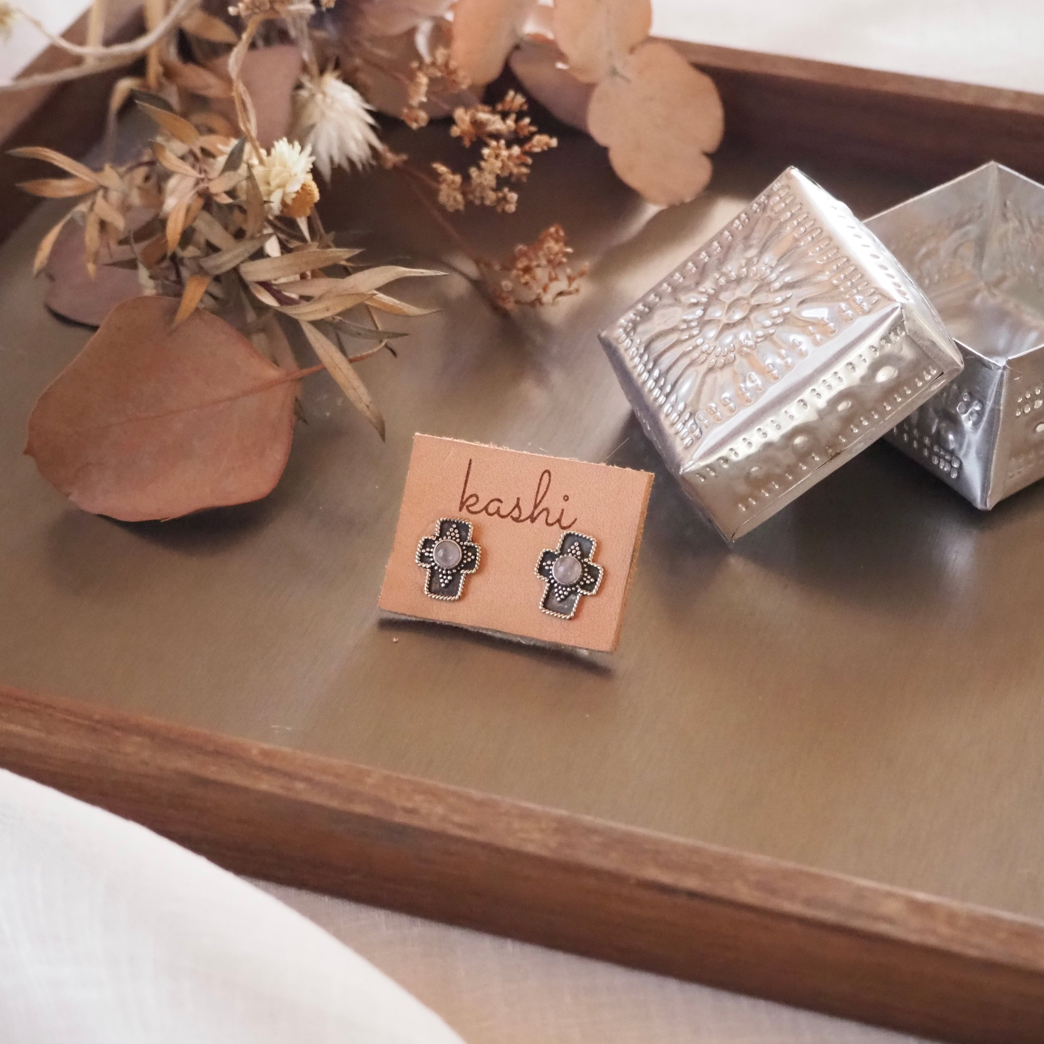 ⌘LuUna silver⌘ cross rose quartz silver925ピアス
