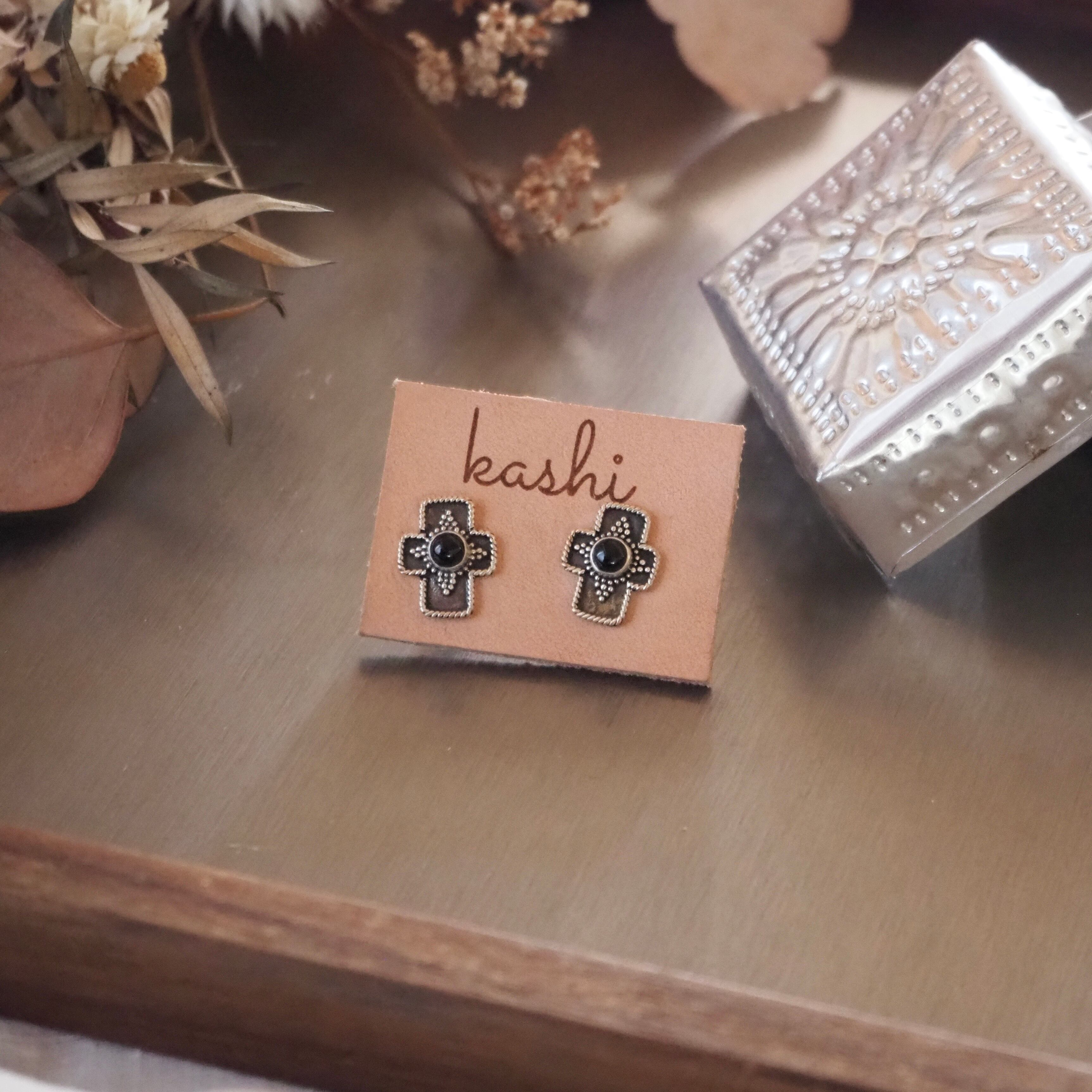 ⌘LuUna silver⌘ cross onyx silver925ピアス