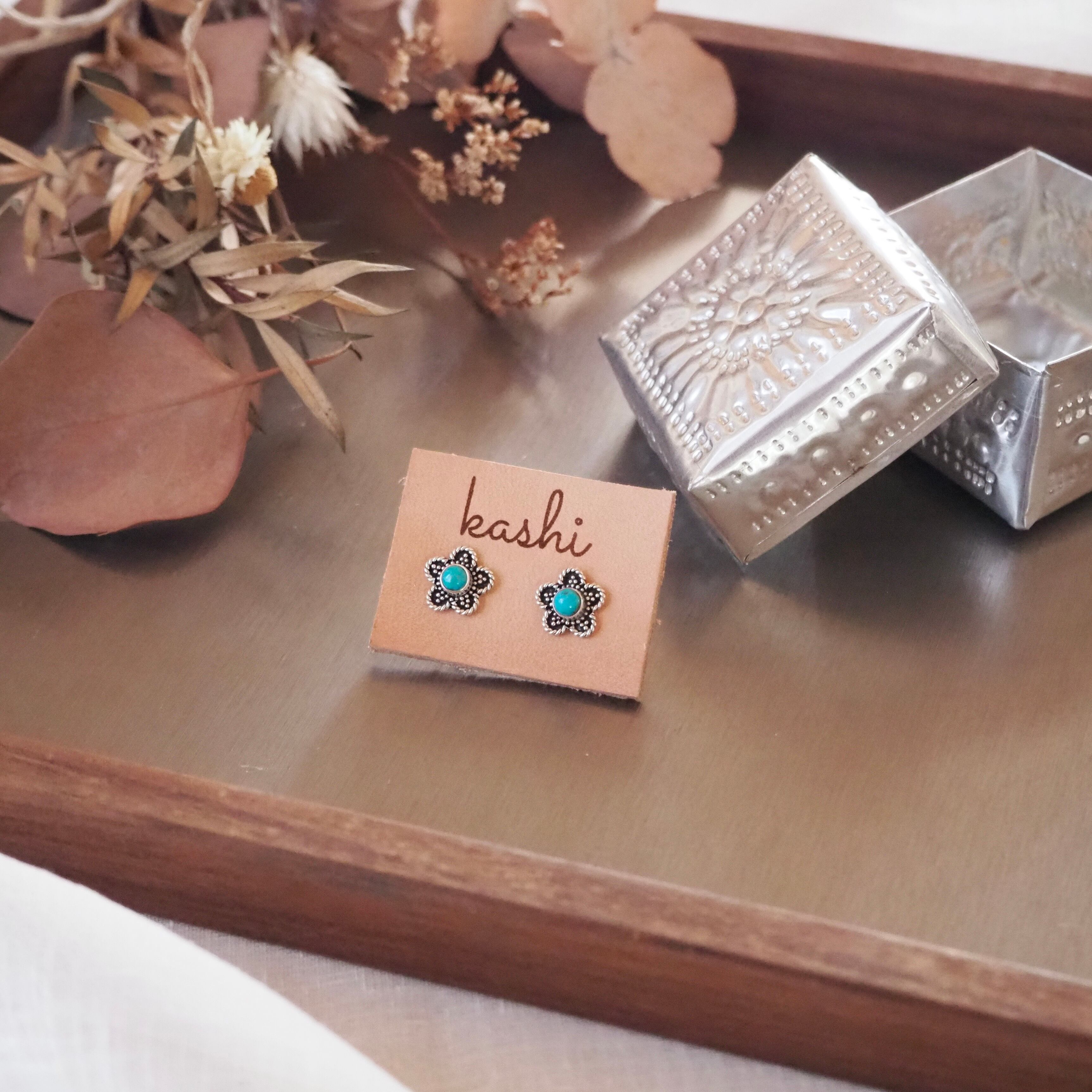 ⌘LuUna silver⌘ flower turquoise silver925ピアス