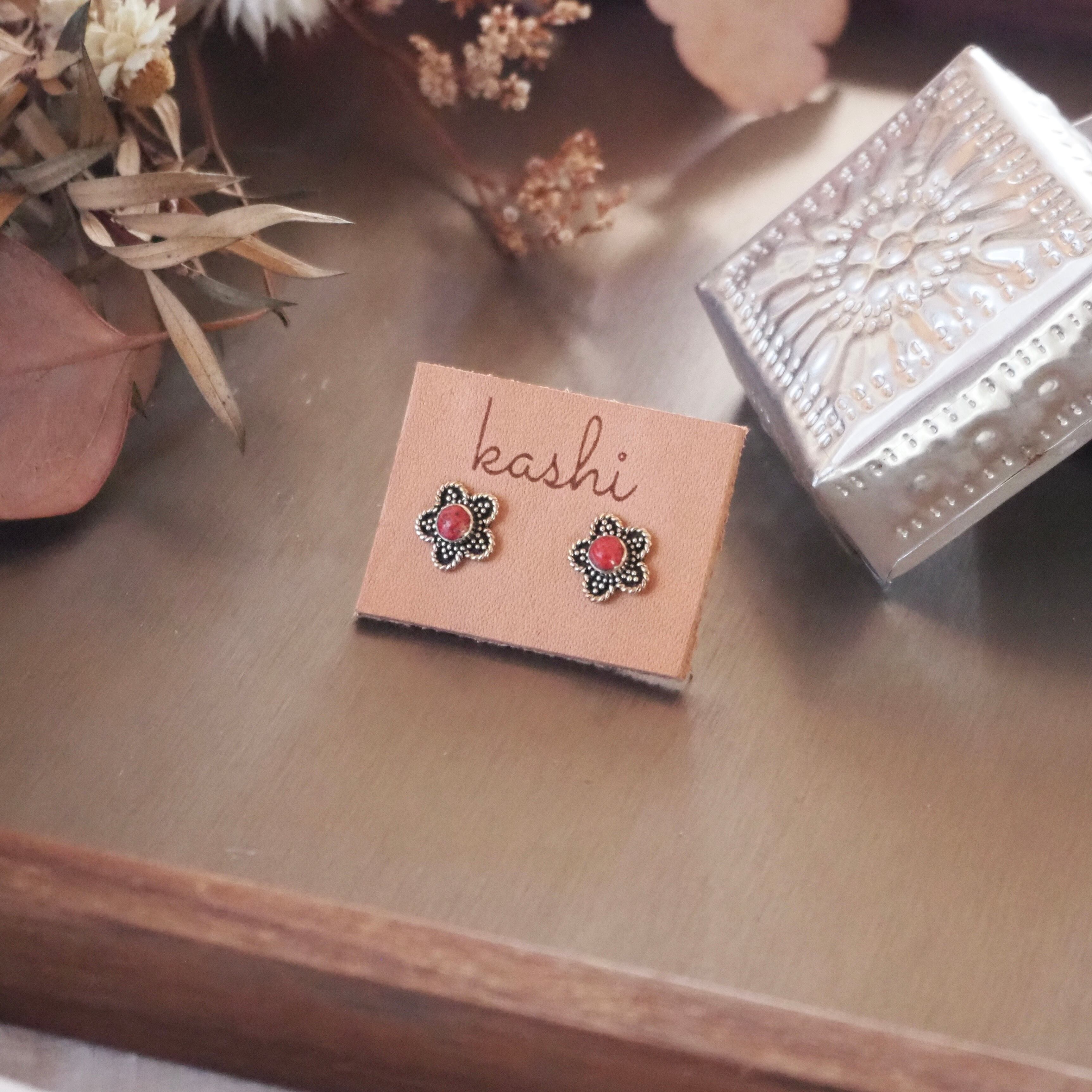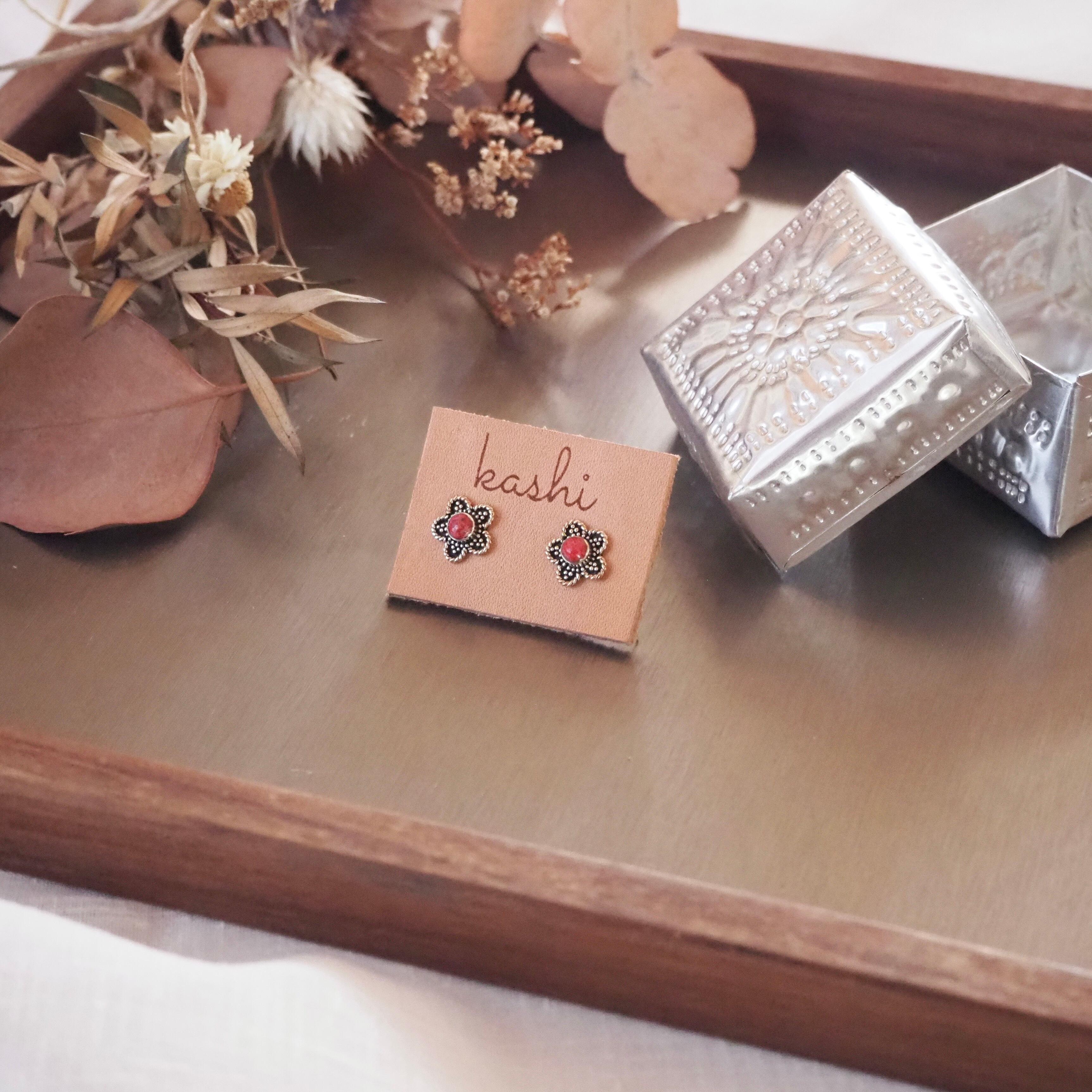 ⌘LuUna silver⌘ flower red coral silver925ピアス